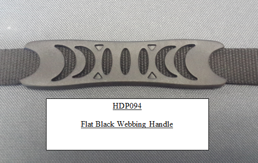 |  HDM600 - Gold Handbag Handle  HDP092 - Black Webbing Handle  HDP093 - Round Black Webbing handle  HDP094 - Flat Black Webbing Handle  HDP095 - Small Black Handle  HDP096 - Large Black Handle  HDP103 - Black Handle  HDP104 - Black Handle  HDP109 - Black Handle  HDP115 - Brown Handle  HDP200 - Black Handles  HDS112 - Black Spring handle |