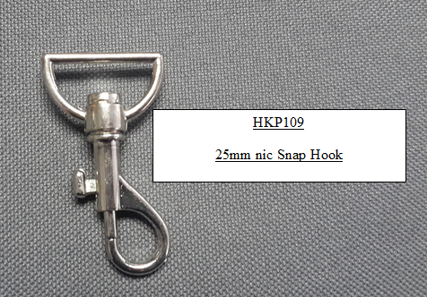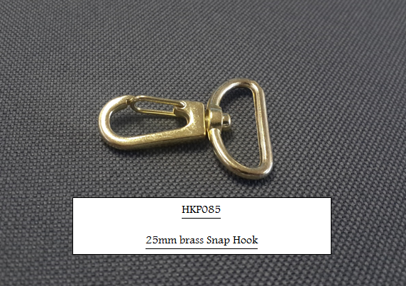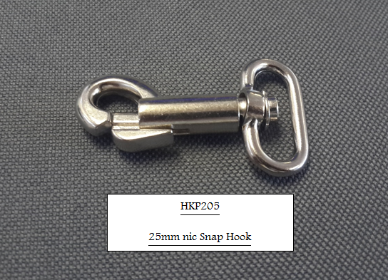 |  HKP085 - 25mm Brass Snap Hook  HKP109 - Nic 25mm Snap Hook  HKP118 - Nic 25mm Snap Hook  HKP125 - 25mm Ant Brass Snap Hook  HKP205 - 25mm Nickel Snap Hook |